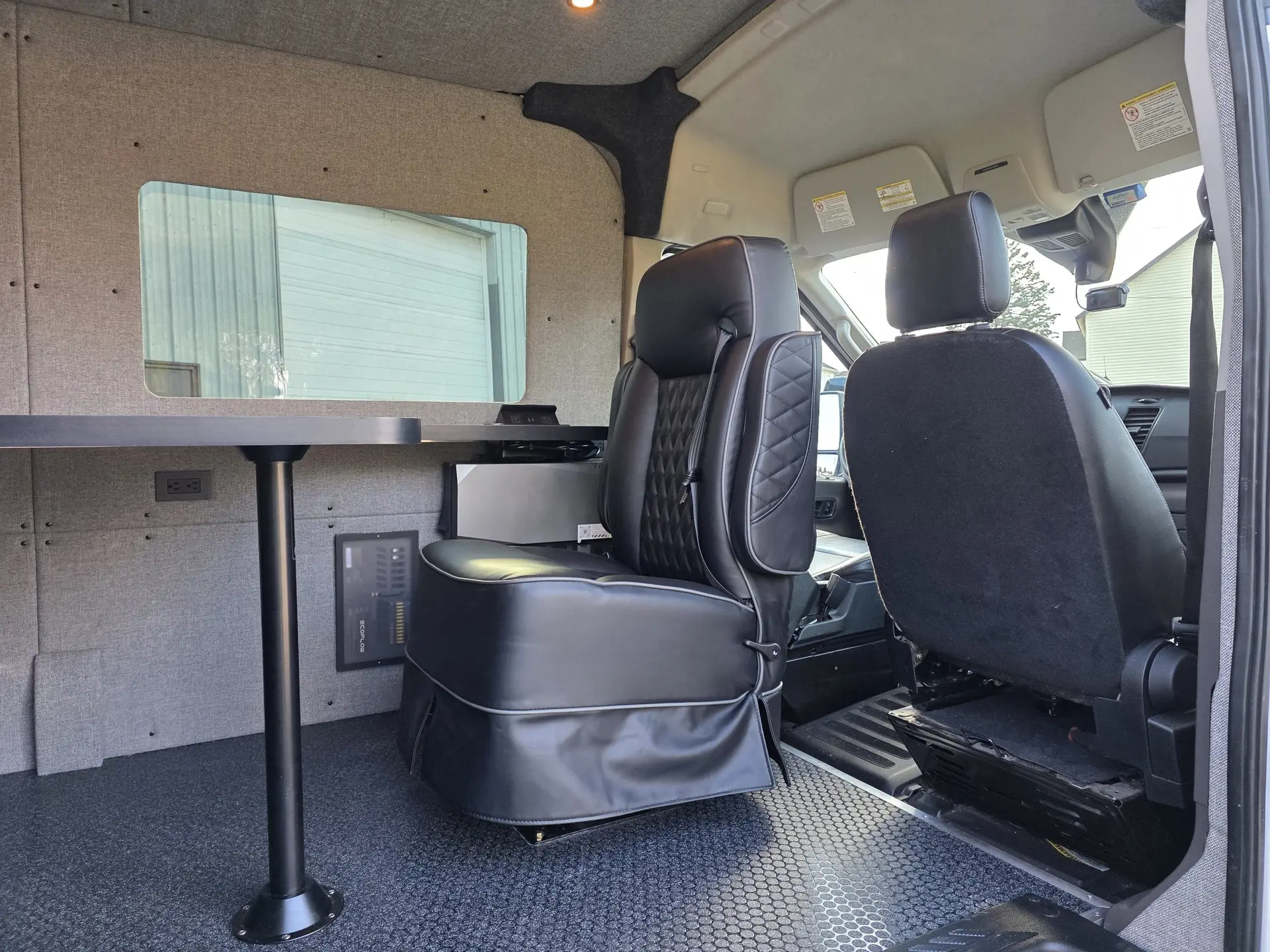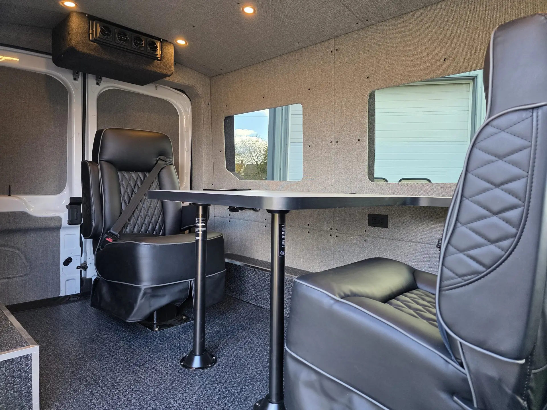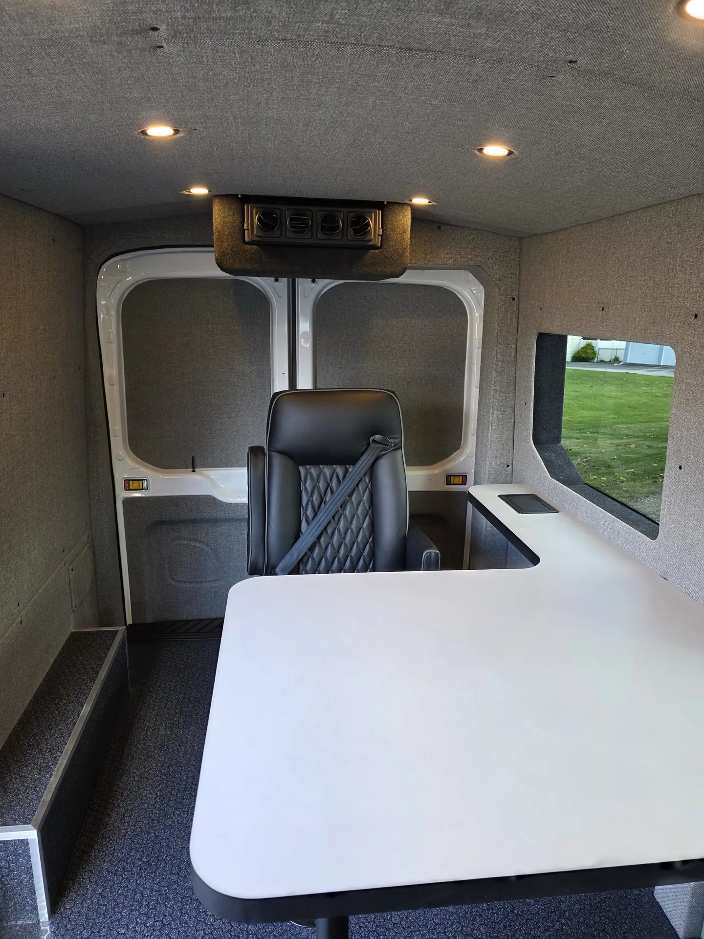 There Is something to be said for being able to take your office with you wherever you go. This mobile office conversion is packed with all the necessities needed to get the job done from anywhere. Its not just comfortable ride. The power system in this will allow you to anything you need even with the vehicle parked and turned off. Along with that the HVAC system will keep the interior climate controlled no matter the temps outside.