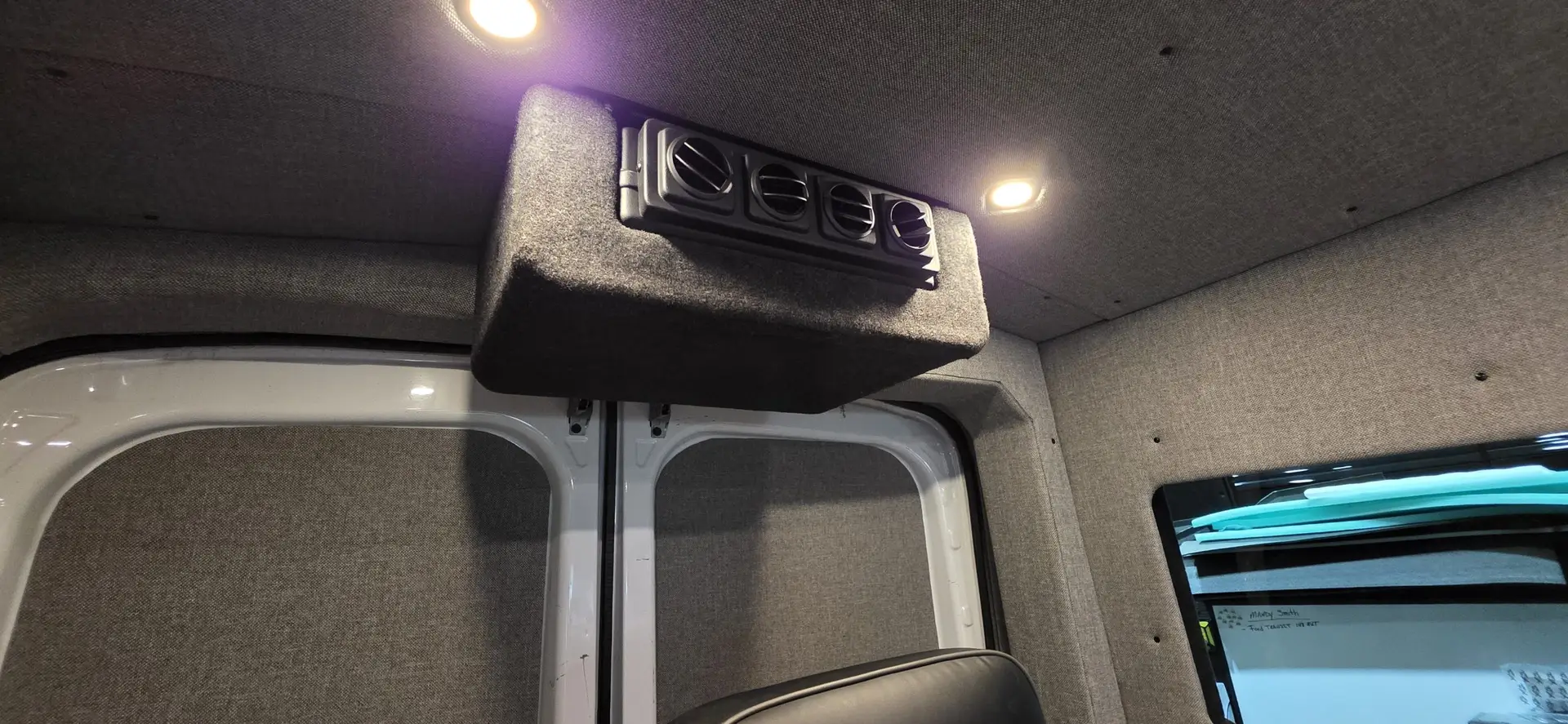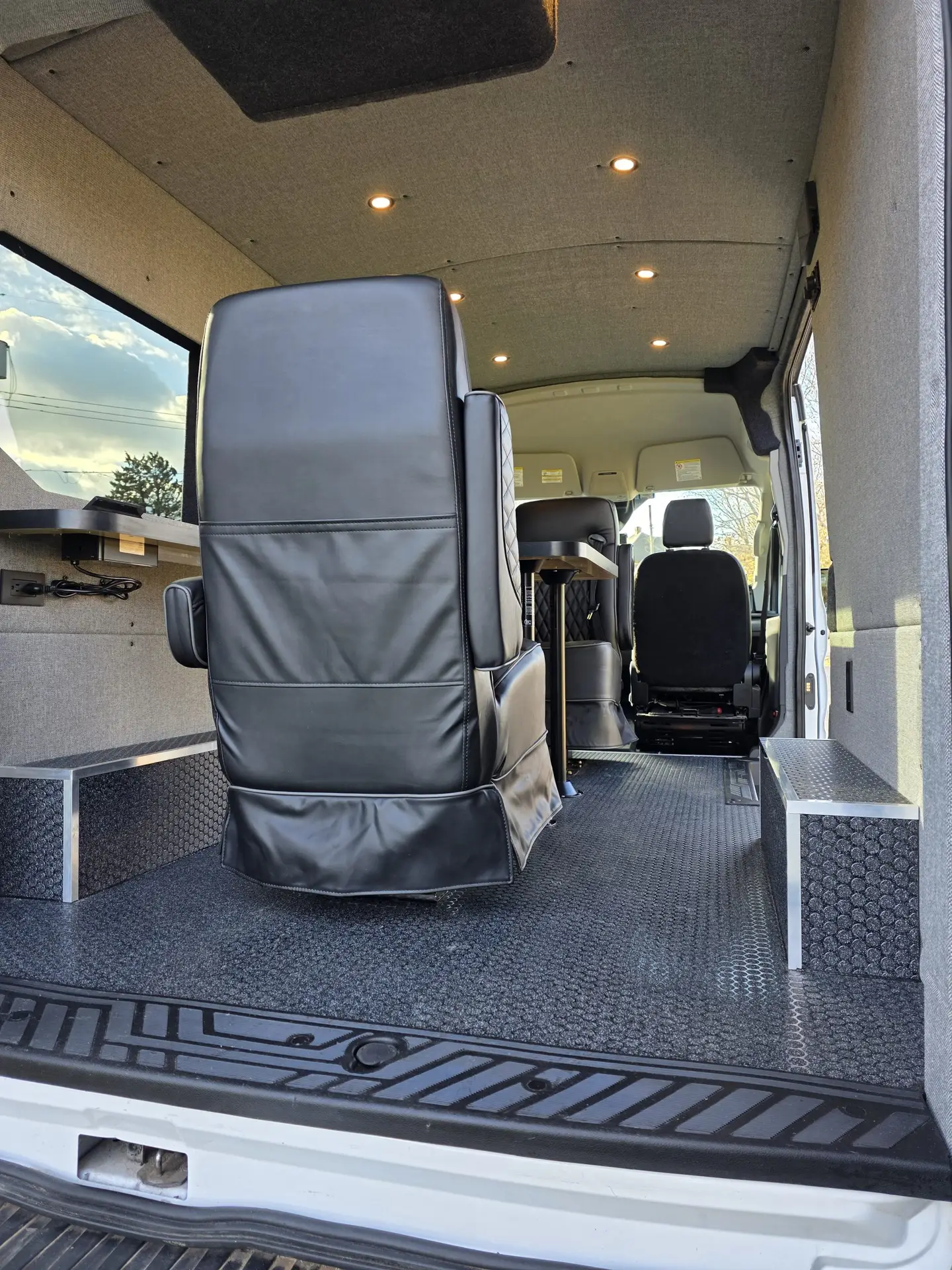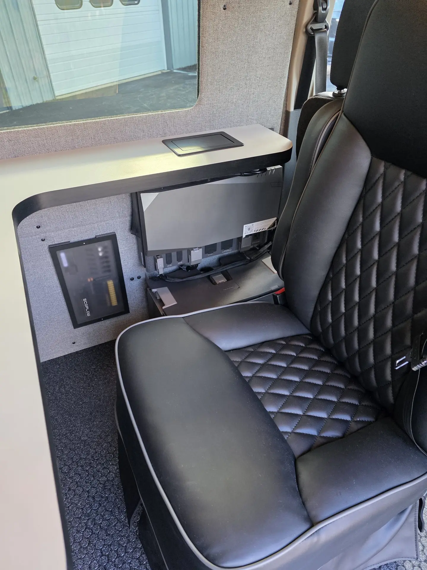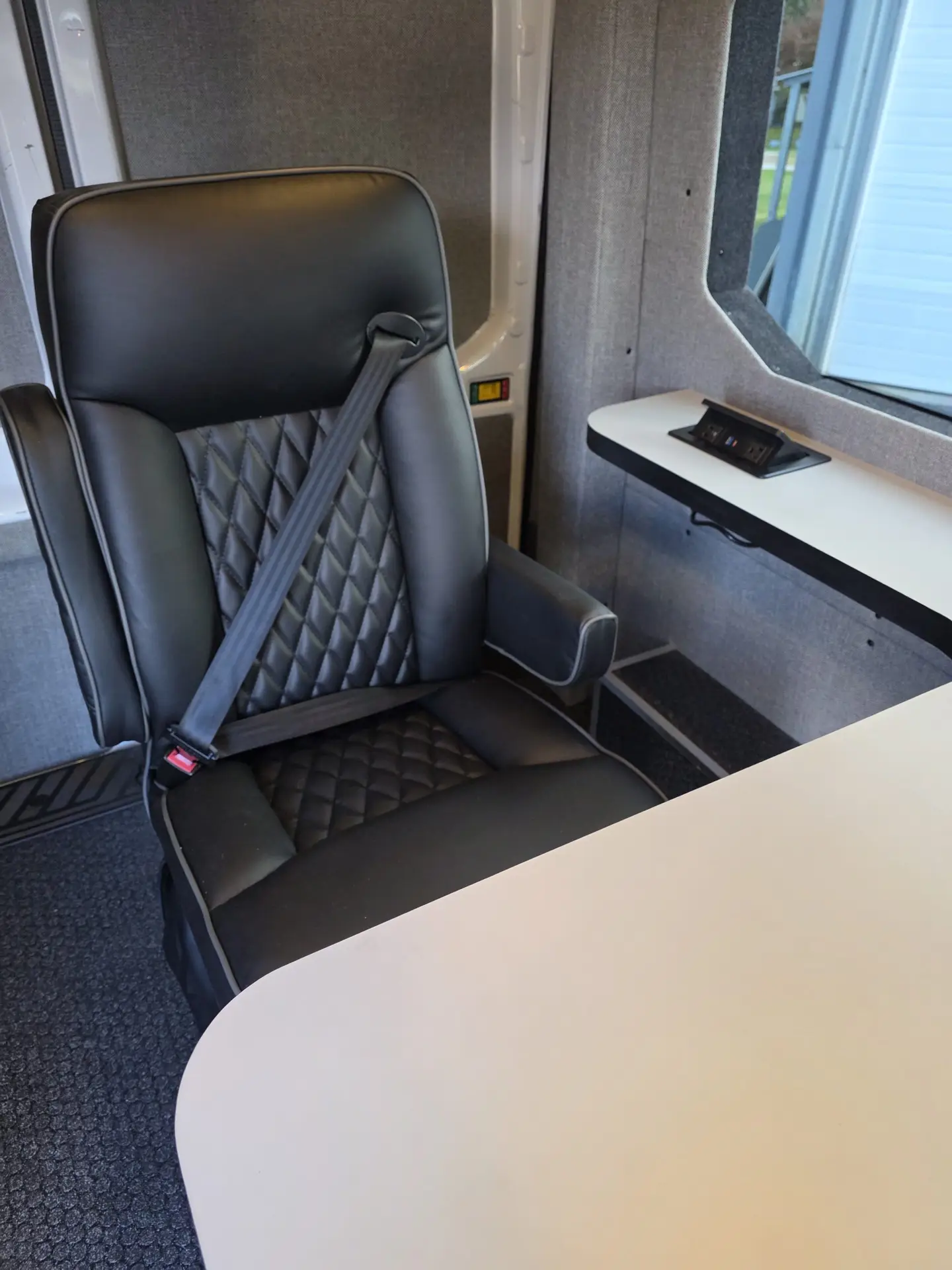 There Is something to be said for being able to take your office with you wherever you go. This mobile office conversion is packed with all the necessities needed to get the job done from anywhere. Its not just comfortable ride. The power system in this will allow you to anything you need even with the vehicle parked and turned off. Along with that the HVAC system will keep the interior climate controlled no matter the temps outside.